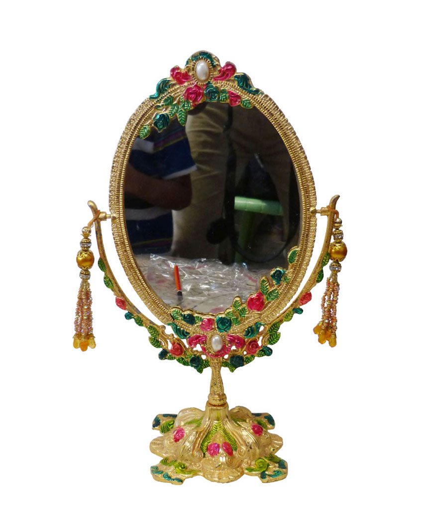 Silver Flora Mirror Gold finish table top mirror , Best for Dressing,Home Decor, Make-up,Gifting